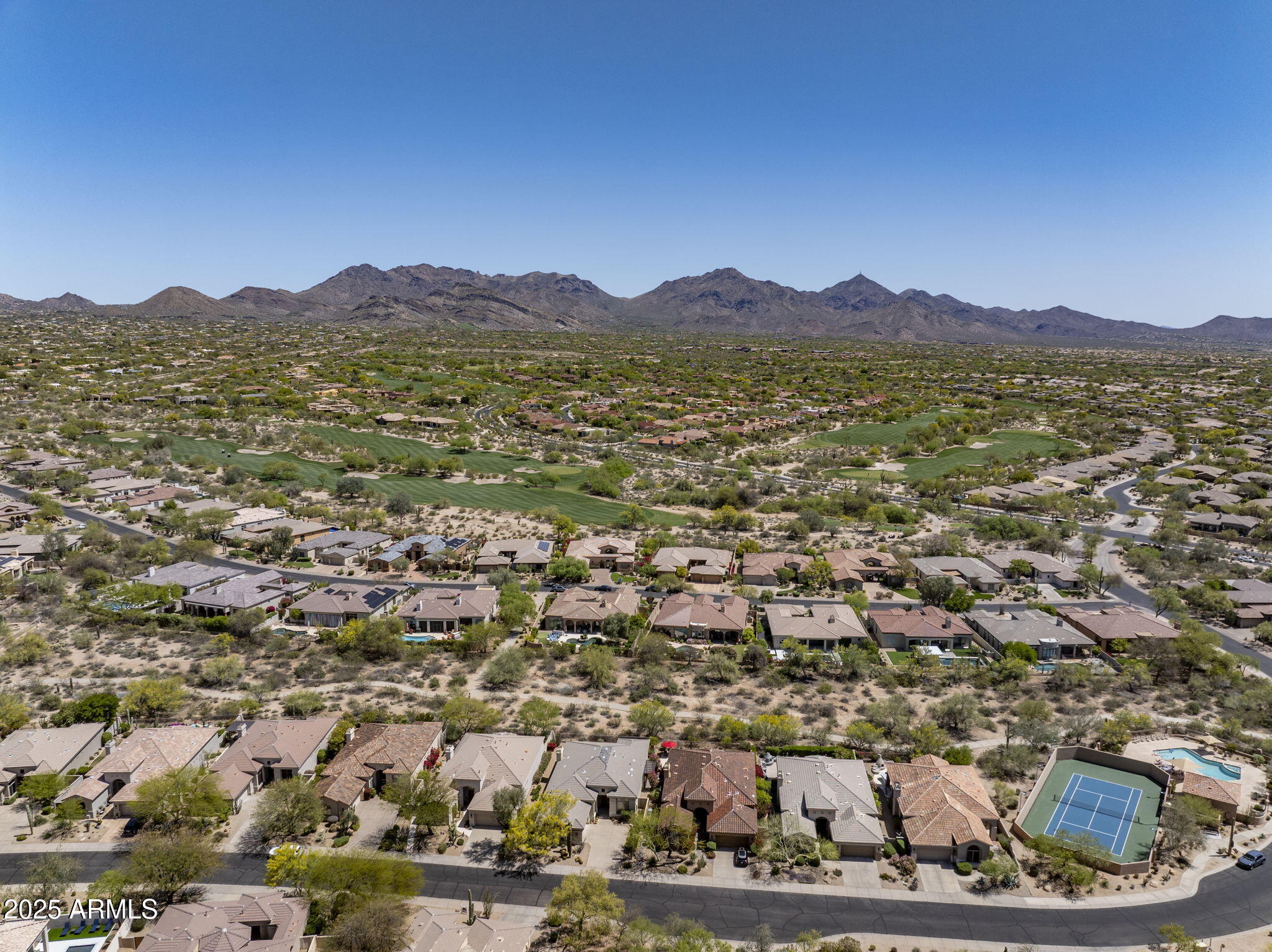 Welcome to guard gated Raptor Retreat at Grayhawk,, North Scottsdale, where sophisticated design and modern elegance seamlessly merge indoor and outdoor living spaces for the optimum golf lifestyle. Nestled by the 4th fairway of Grayhawk Raptor golf course with views of both the golf course and McDowell Mountains, this single level home with separate casita offers an open concept layout with a neutral backdrop accentuating contemporary touches, including designer fixtures, engineered wood flooring, wide plank baseboards, stone flooring and custom cabinets. A paver driveway and walkway lead to the gated front courtyard entrance, offering access to the casita as well as the resort style backyard. A custom front door welcomes you in, more opening to the great room where eyes are immediately drawn to endless views framed by expansive windows and doors. Abundant light dances throughout the spaces, creating a serene sanctuary that flows with ease. The updated kitchen with large dolomite island and counters offers premium stainless appliances for the family chef including a gas range, pot filler, drawer microwave and separate wine refrigerator. The serene experience continues into the primary suite with a spa style bath designed for relaxation featuring a freestanding soaking tub, soapstone counter, spacious walk-in shower with dual rain heads and dual walk-in closets. The residence centers around the outdoor living space offering exquisite views to enjoy while dining on the large covered patio or relaxing in one of the multiple spaces for gathering around the heated pool with water feature and built-in firepit. Lush vegetation surrounds, softening the scene with splashes of color. Not to be overlooked, a 3-car garage with epoxy flooring and storage provides abundant space for toys. A wonderful home for year-round or seasonal use, this tranquil retreat is conveniently located close to shopping, dining, hospitals, freeways, schools as well as provides privacy and peace.